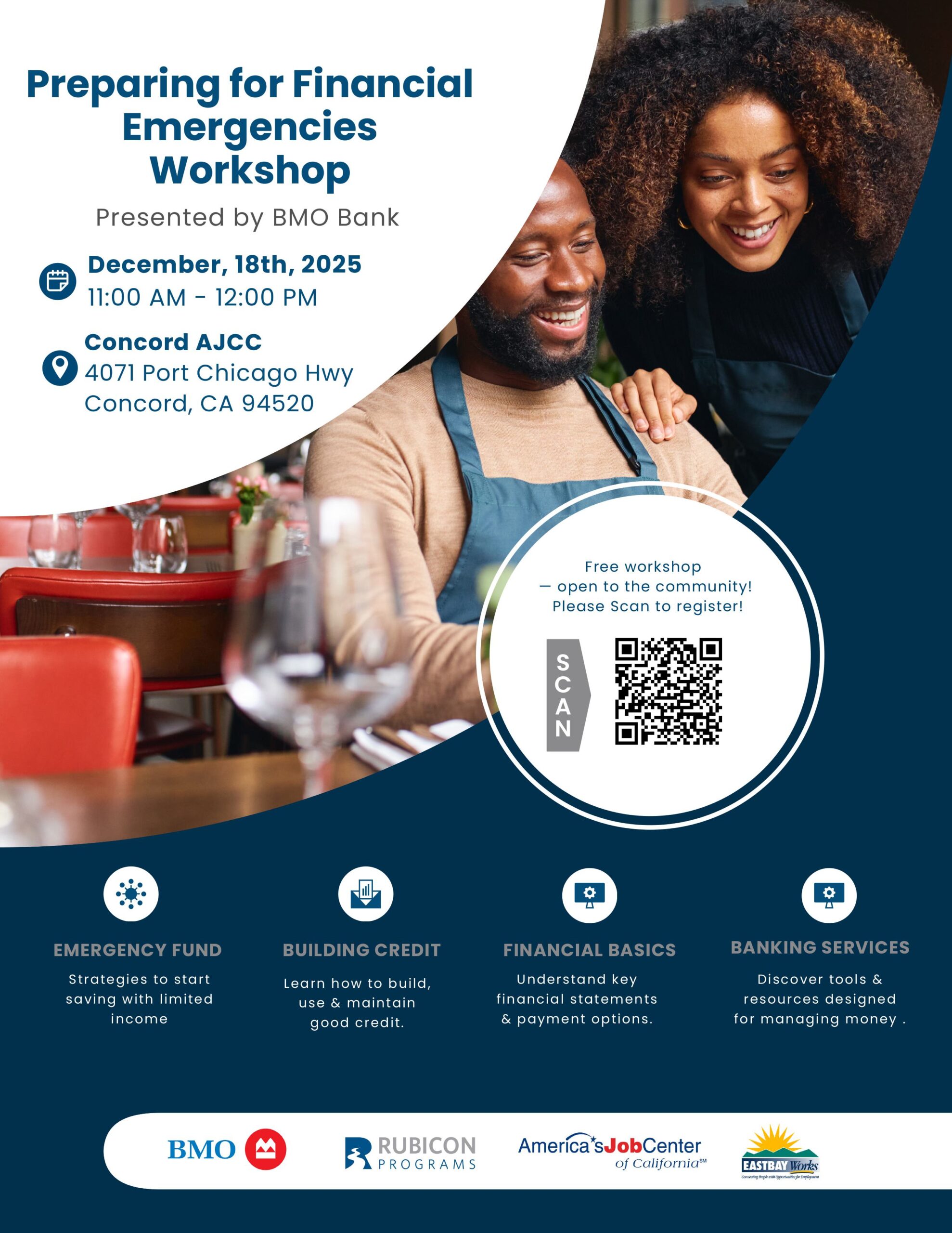 PREPARING FOR FINANCIAL EMERGENCIES WORKSOP + Add to Google Calendar + iCal / Outlook export 00 days 00 hours 00 minutes 00 seconds Date Dec 18 2025 Time 11:00 am - 12:00 pm More Info REGISTER HERE Location Concord AJCC - Rubicon Virtual/Remote Services Available Category Financial Education Organizer AJCC CONCORD Phone 925-671-4500 REGISTER HERE Share this event